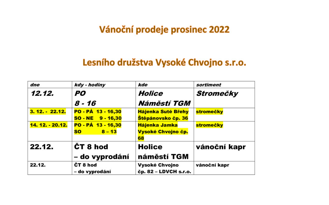 V pátek 22. 11. 2024 se uskuteční v lesních porostech mezi Vysokým Chvojnem, Bělečkem, Hoděšovicemi a Chvojnecem hromadná lovecká akce. Lesní družstvo Vysoké Chvojno žádá veřejnost, aby v rámci své bezpečnosti, nevstupovala do míst, kde bude probíhat lov. Při lovu se...